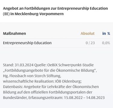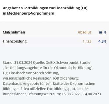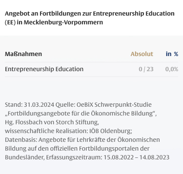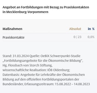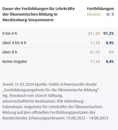 Die Dauer von Fortbildungen für Lehrkräfte ist mitentscheidend für deren Wirksamkeit, wobei insbesondere den so genannten One-Shot-Maßnahmen, die nur wenige Stunden dauern, ein geringes Wirkungspotenzial zugeschrieben wird. Vor dem Hintergrund des hohen Anteils fachfremd unterrichtender Lehrkräfte in der Ökonomischen Bildung ist der geringe Anteil längerer Fortbildungen besonders problematisch.