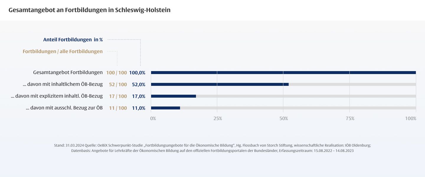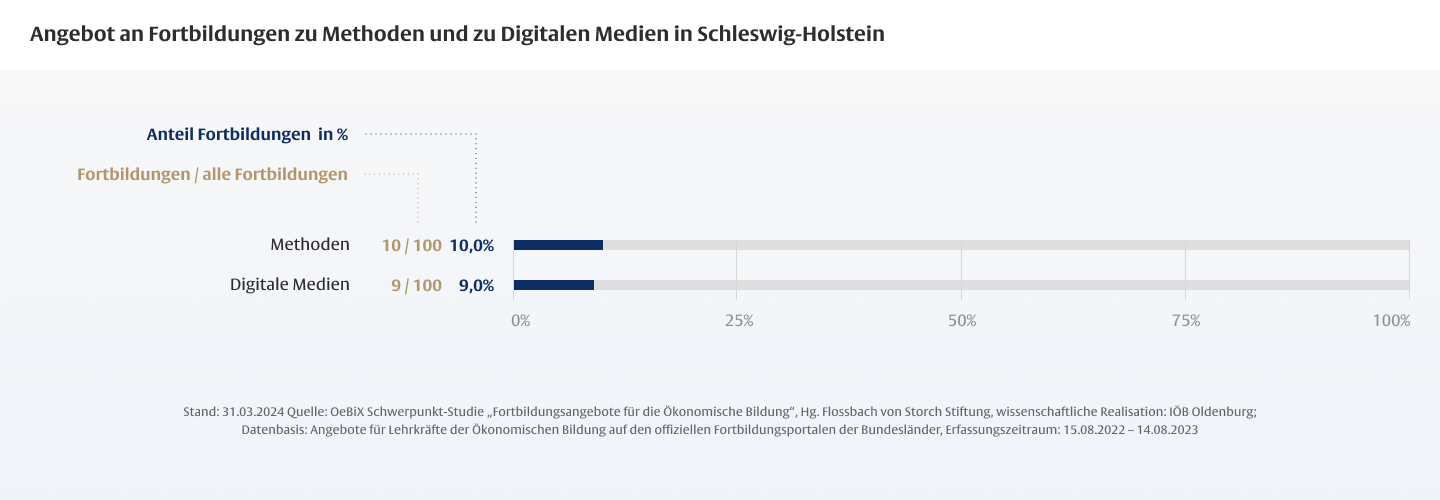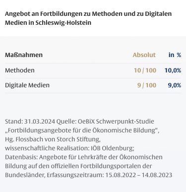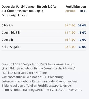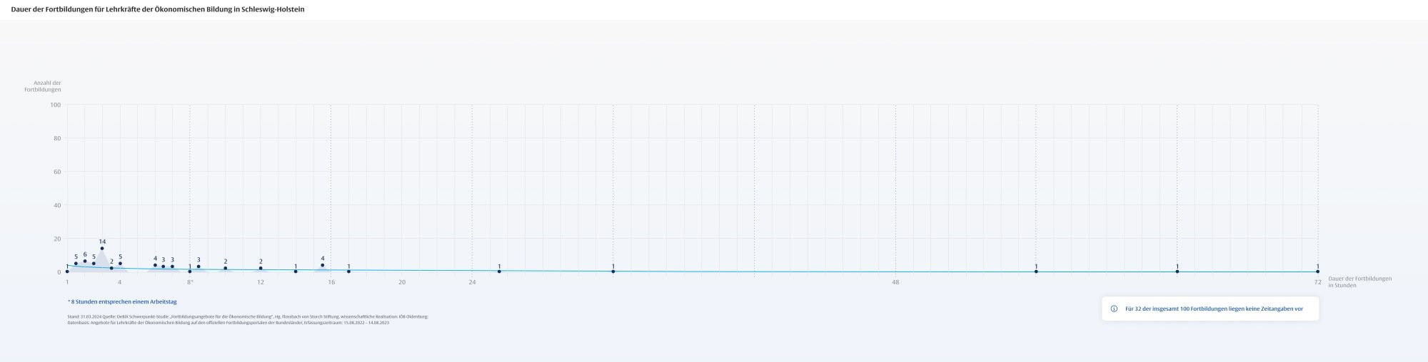 In Schleswig-Holstein weisen 50 Prozent der angebotenen Fortbildungen einen zeitlichen Umfang von acht oder weniger Stunden auf.