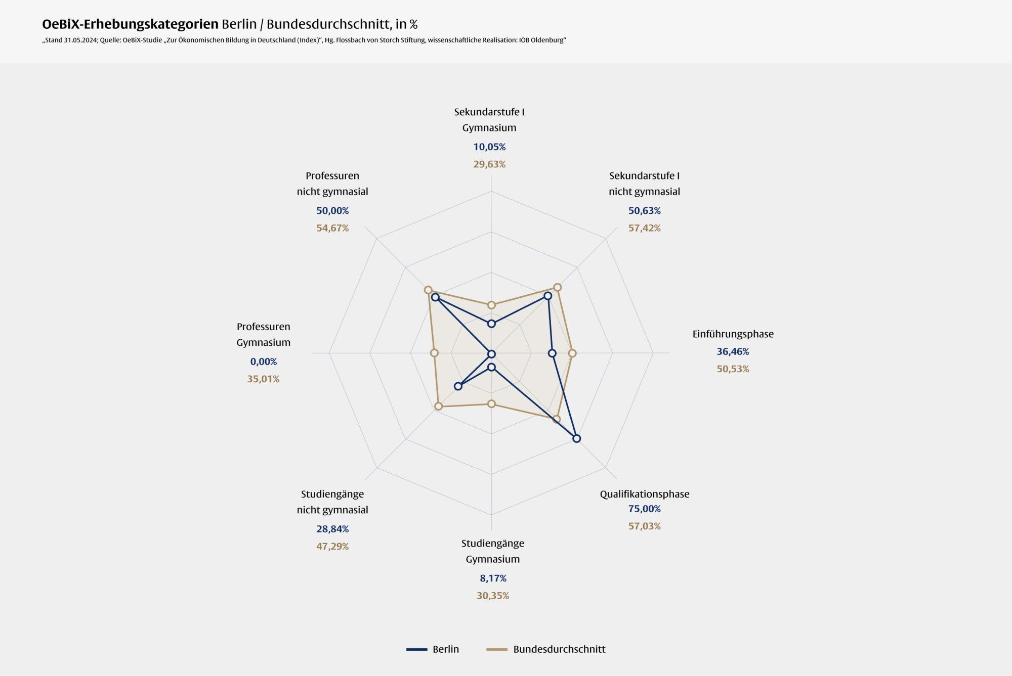 Besonders große Defizite deckte die OeBiX-Studie in der gymnasialen Lehrkräftebildung auf. Hier fehlen ökonomische Inhalte im Studium für das wirtschaftsaffine Ankerfach am Gymnasium sowie wirtschaftsdidaktische Professuren mit Zuständigkeit für diese Studiengänge völlig.