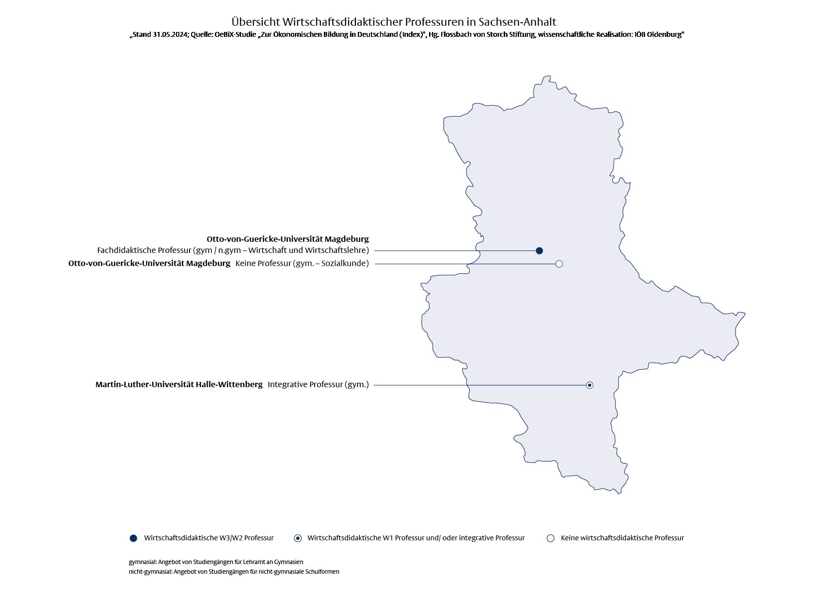 An der Universität in Magdeburg gibt es eine wirtschaftsdidaktische Professur. Diese ist aber nicht für das Fach Sozialkunde zuständig, sondern für Wirtschaft bzw. Wirtschaftslehre. An der Universität Halle-Wittenberg existiert eine integrative Professur.
