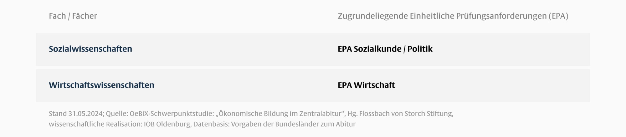 Die Fächer der Ökonomischen Bildung in Berlin lassen sich wie folgt den Fächergruppen zuordnen: