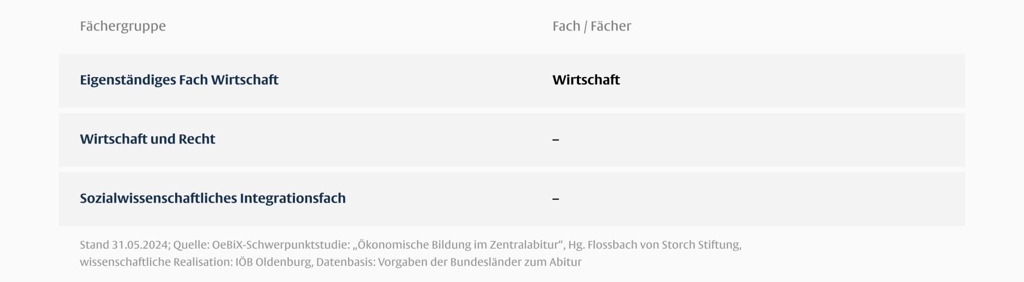 Das Fach der Ökonomischen Bildung in Mecklenburg-Vorpommern lässt sich wie folgt den Fächergruppen zuordnen: