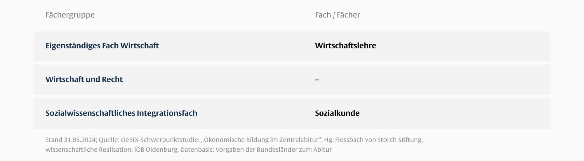 Die Fächer der Ökonomischen Bildung im Saarland lassen sich wie folgt den Fächergruppen zuordnen: