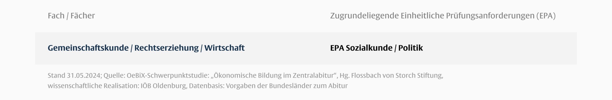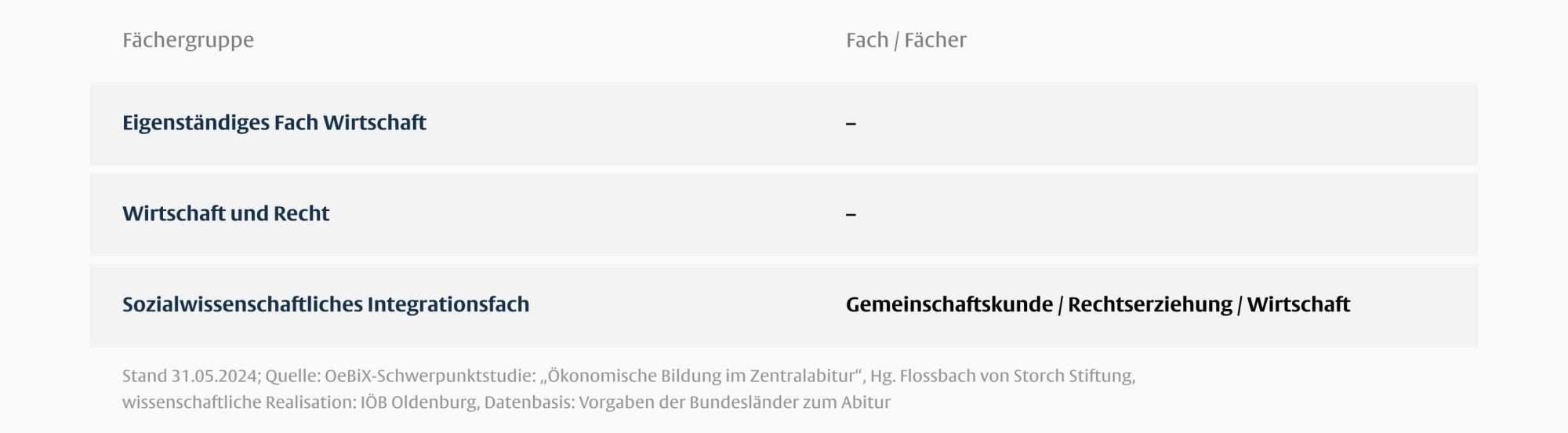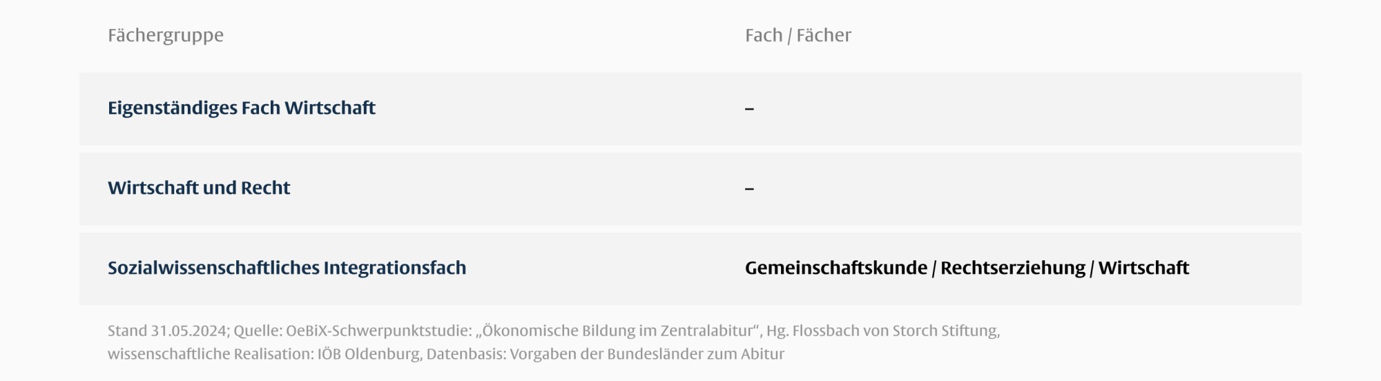 Die Fächer der Ökonomischen Bildung in Sachsen lassen sich wie folgt den Fächergruppen zuordnen:
